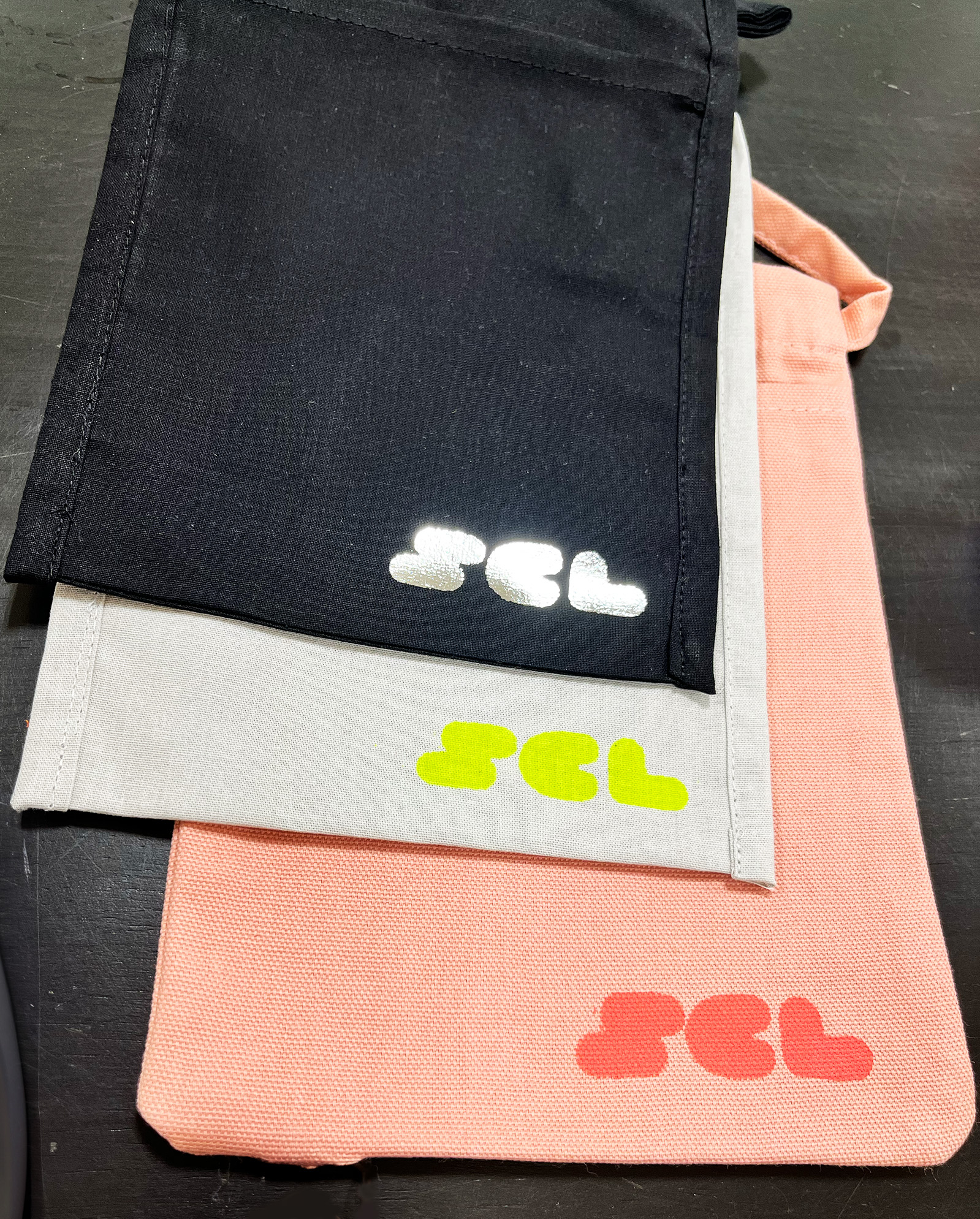 サコッシュはいい感じのものを仕入れ、早速印刷していきます。
